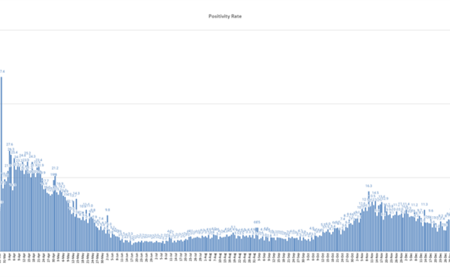 The state continued to see progress with its rolling seven-day average COVID-19 case positivity rate, which decreased for the 12th straight day Wednesday.